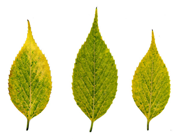 緑色の色素が分解されると、分解されていない黄色の色素が残るため葉が黄色く見えるようになります(黄葉)。